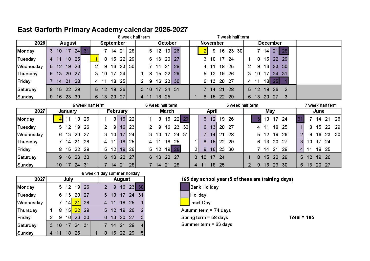 East Garforth Primary Academy Calendar 2025-2026